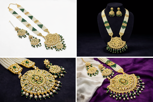 Traditional Pearl Rani Haar Necklace Set with Green Stone Design – Long Bridal Ethnic Jewellery | RHA0374